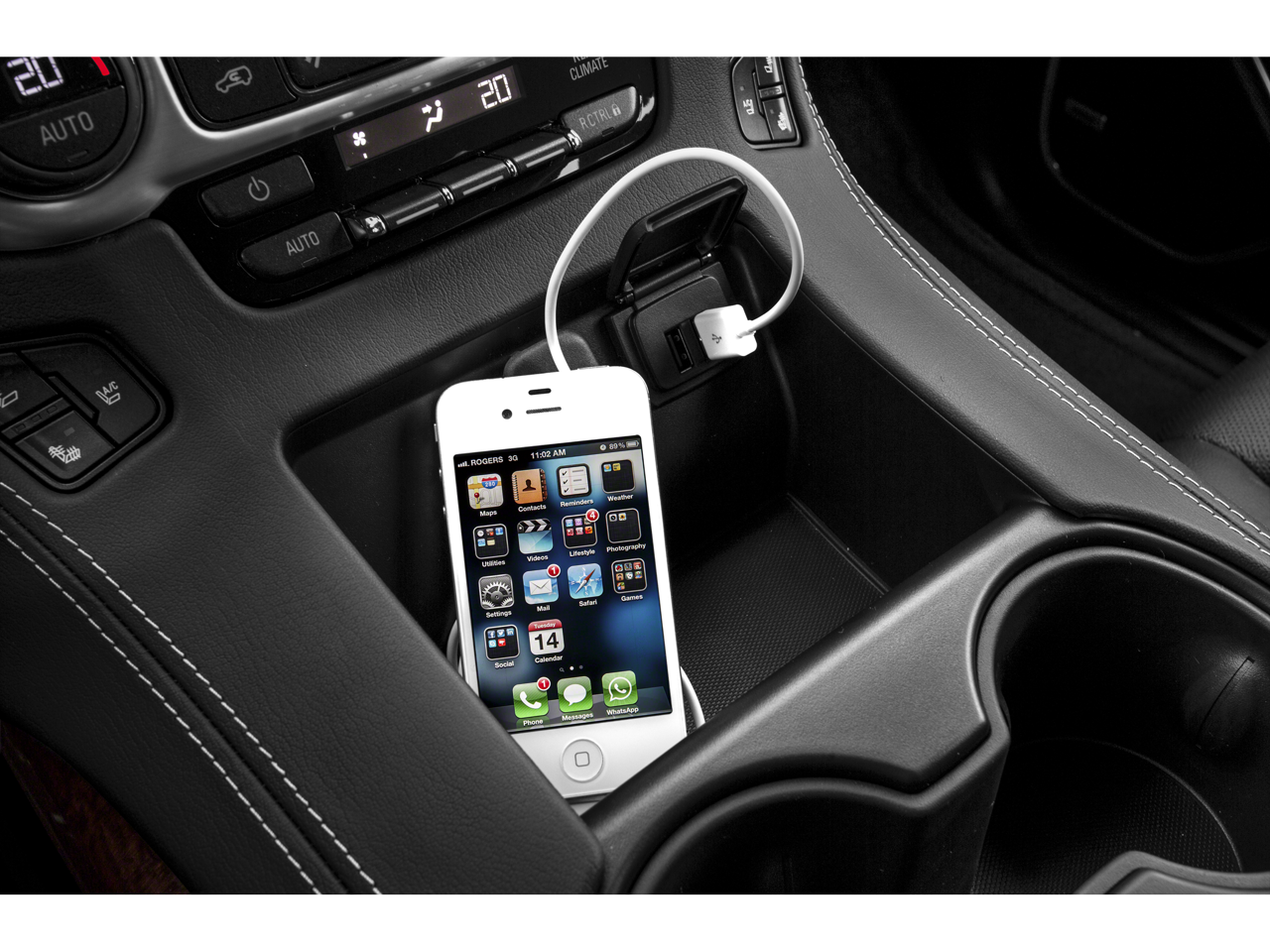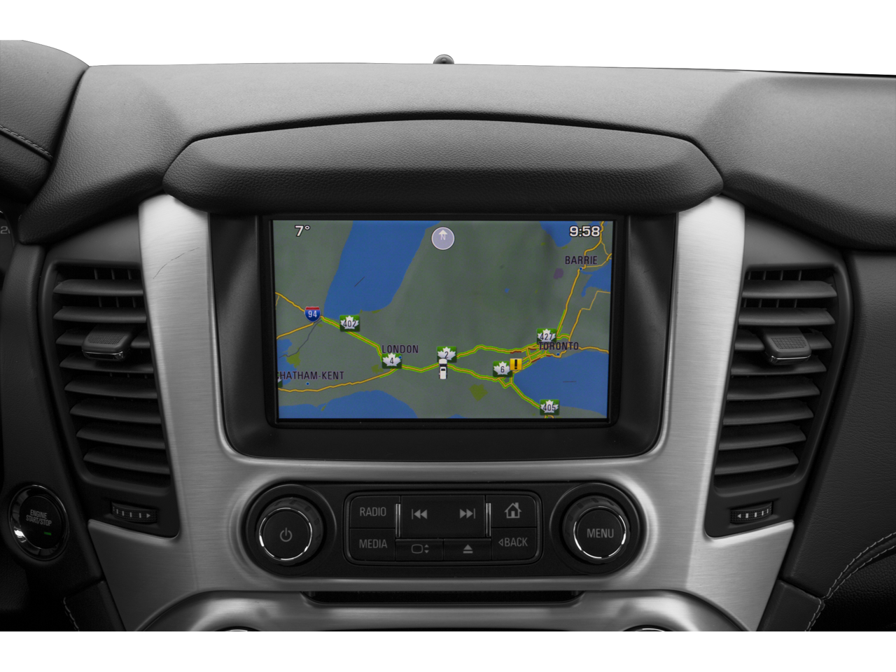 - Audio system, 8" Diagonal Color Touch Screen with IntelliLink includes New text message alerts and Siri Eyes Free functionality through voice command, AM/FM/SiriusXM/HD with USB ports, auxiliary jack, SD card slot, Bluetooth streaming audio for music and most phones, hands-free smartphone integration, Pandora Internet radio and voice-activated technology for radio and phone, and an articulating screen with hidden storage. Includes 5 USB ports, 1 auxiliary jack and 1 SD card reader (See "gmtotalconnect.com" for phone compatibility information.)